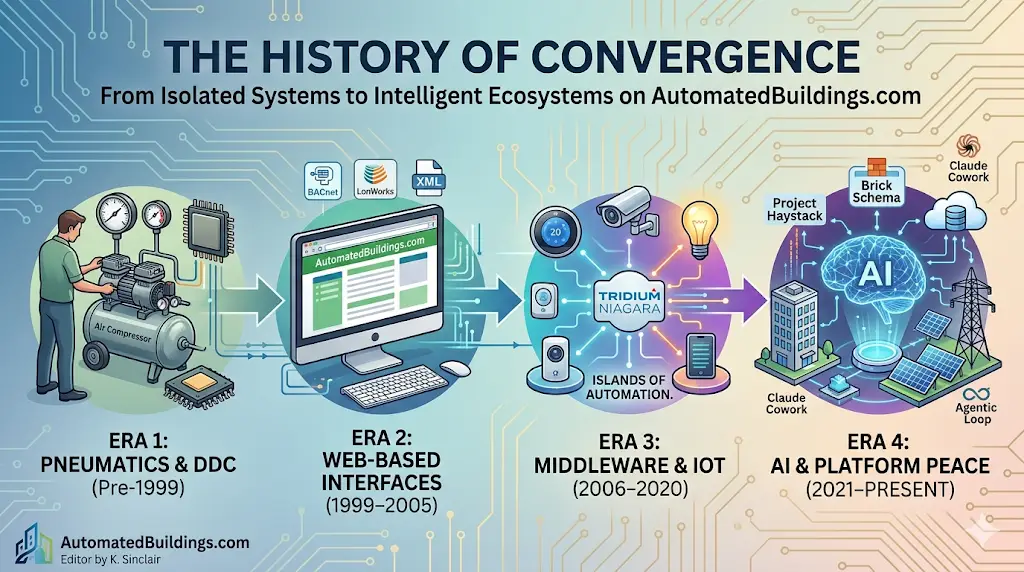 The history of convergence on AutomatedBuildings.com chronicles the shift from isolated mechanical systems to the integrated, AI-driven digital ecosystems of today. As the founder and