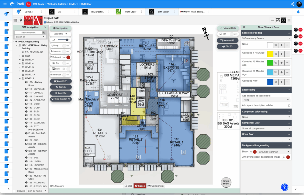 The PAE BIM imported to the ONUMA CloudBIM, with sensor data