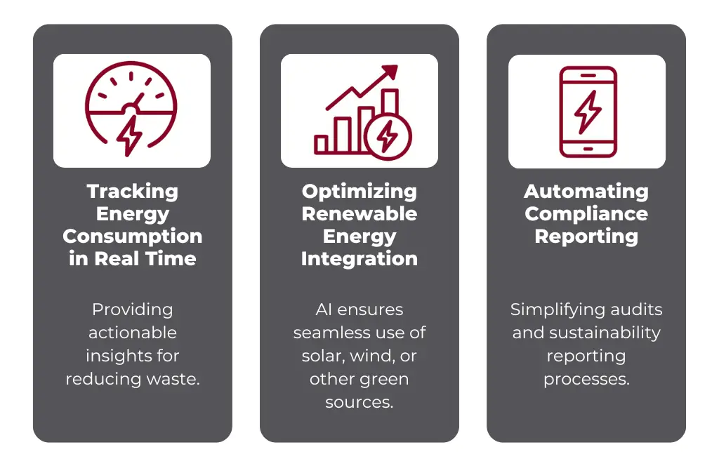 - Optimizing Renewable Energy Integration: AI ensures seamless use of solar, wind, or other green sources.