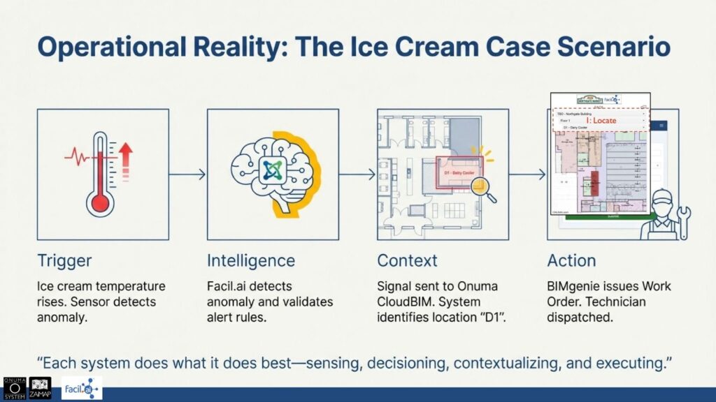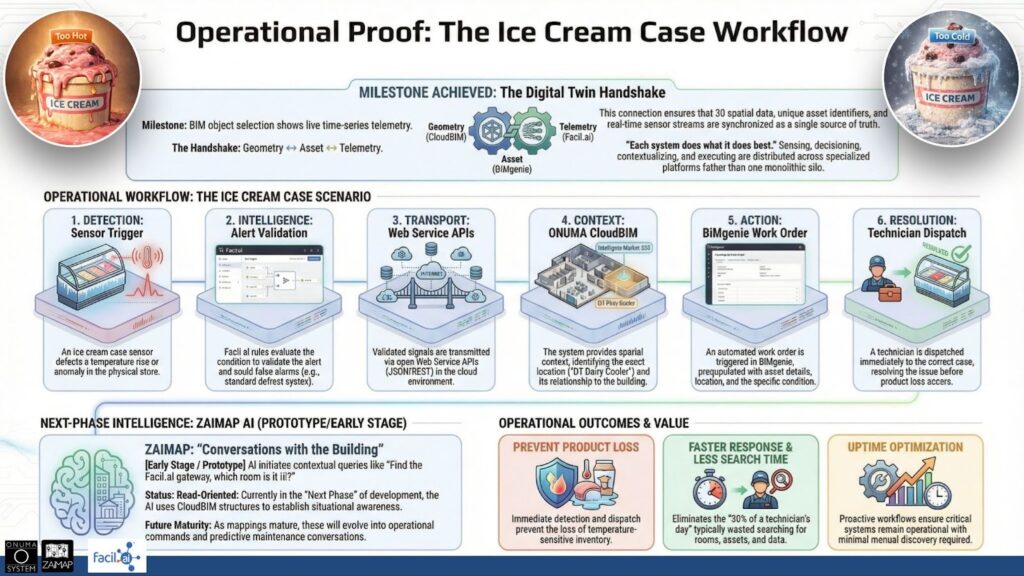 You’ve been told the complexity is non-negotiable. Before you can achieve true operations, you must first endure a months-long, monolithic project to build a perfect model. We took a different path. We started with live data, a single open API (Application Programming Interface), for software systems to exchange data directly from Facil.ai, and one simple question: Could we protect the ice cream freezers? We didn’t rebuild the system. We didn’t wait for a coordinated model. We layered a fully operational digital twin in days. The tools exist. The technology is here. What are you waiting for?