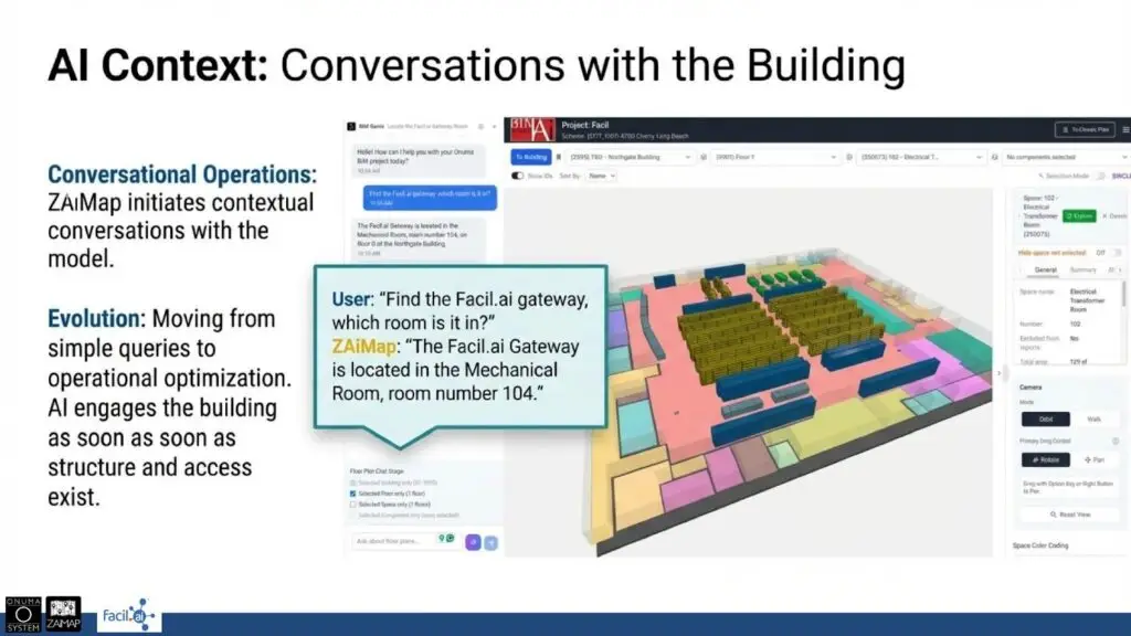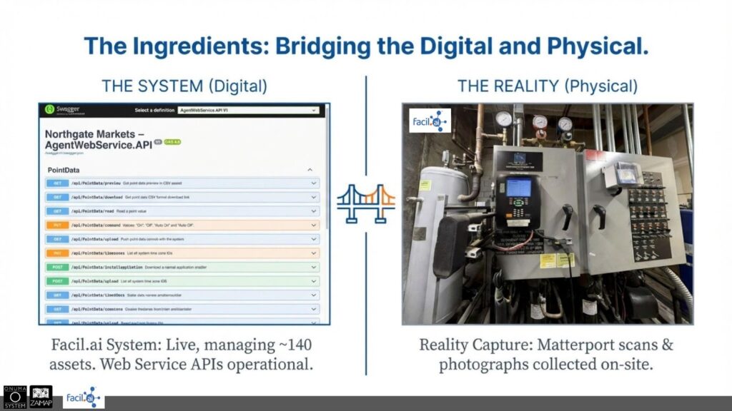 We didn’t replace Facil. We didn’t rewrite their algorithms. We didn’t demand upfront adoption of a specific standard. Facil’s AI continues to do what it does best, learning and balancing loads. As Keith put it, the AI is relentless. We simply layered spatial grounding and structured relationships on top.