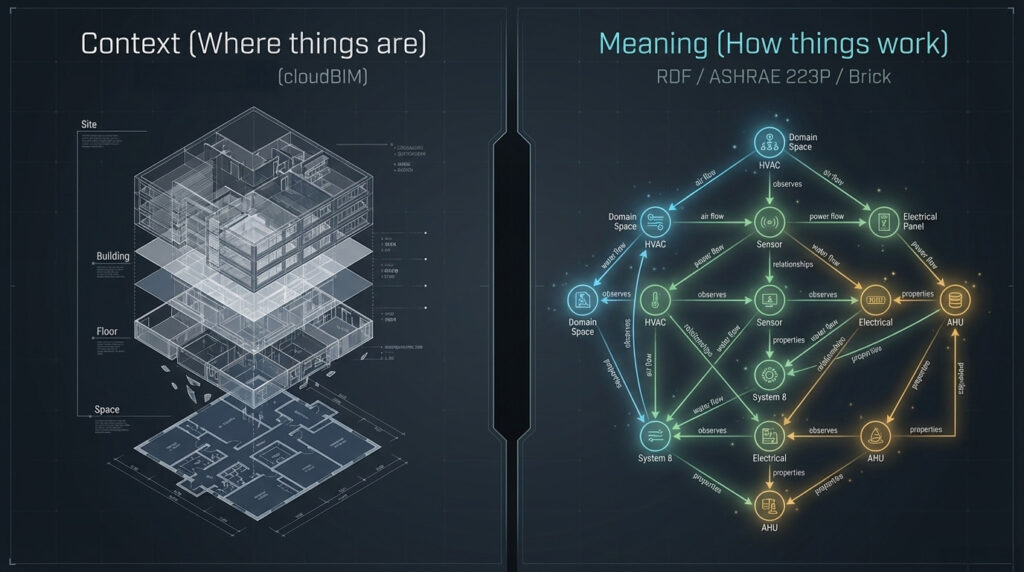 We are already building bridges between physical buildings and digital systems, between design intent and operational reality, between data and meaning, and between disciplines that have never fully aligned. That means connecting systems, assets, sensors, and spaces through consistent relationships.
