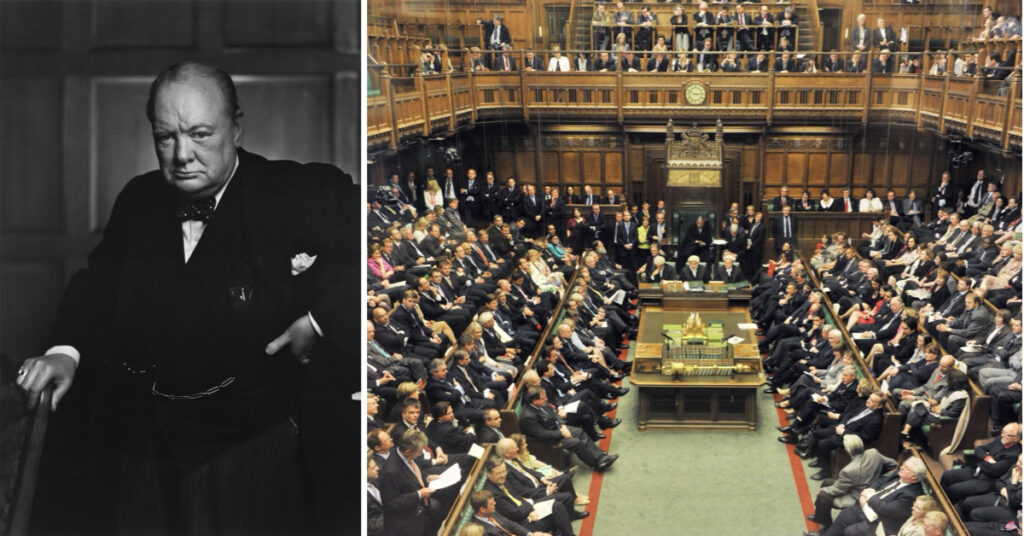 Churchill was referring to the reconstruction of the House of Commons after World War II. The question was simple but profound: Should they rebuild it differently or preserve the structure that shaped democratic debate?